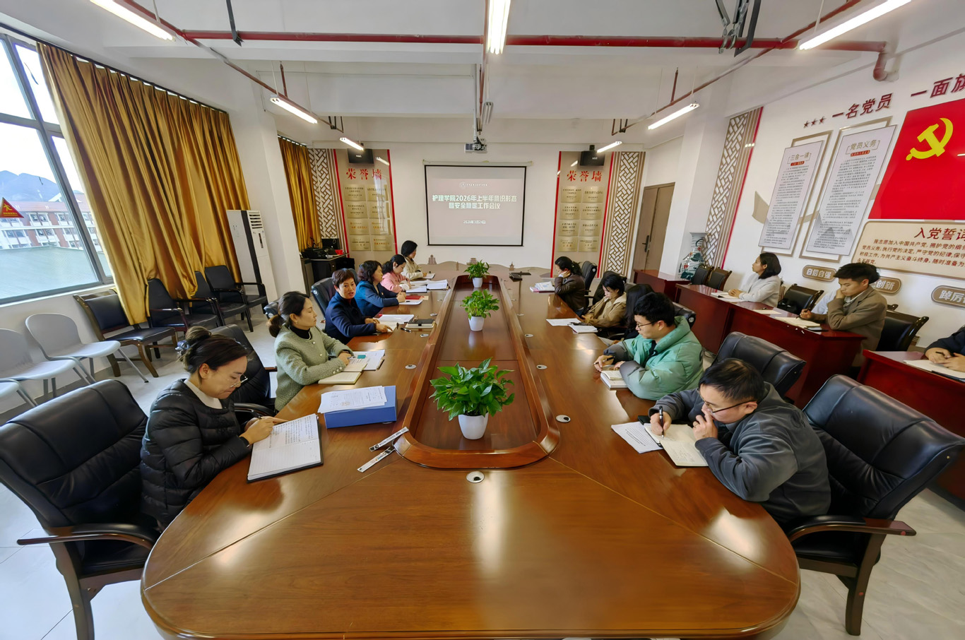 3月24日,护理学院在云漫湖校区酬勤楼六楼会议室召开2026年上半年意识形态暨安全稳定工作会议。会议由学院院长王秀红主持,学院党政领导班子成员、各党支部书记、副科级以上干部和全体辅导员参会。