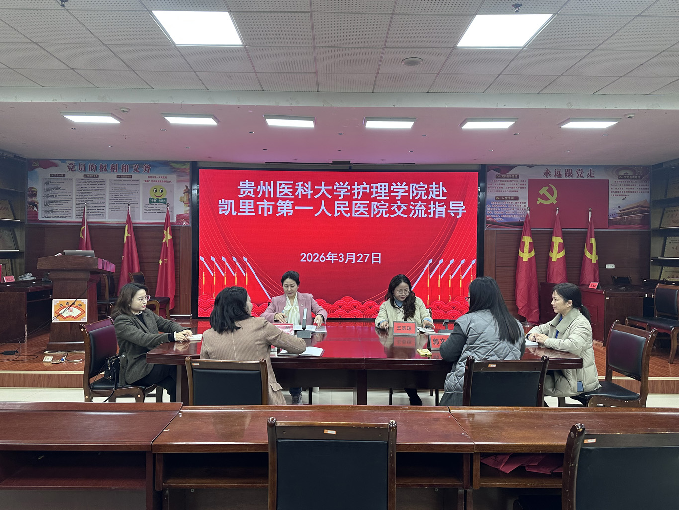 凯里市第一人民医院副院长王志琼(主持工作)、副院长杨心灵,台江县人民医院院长周文、副院长胡静,以及两家单位的护理部主任、副主任、各科护士长以及我院毕业生代表参与了座谈。